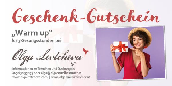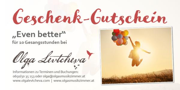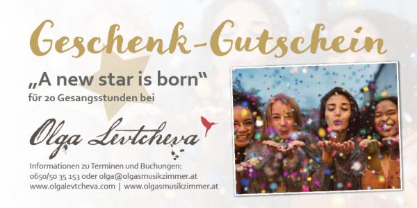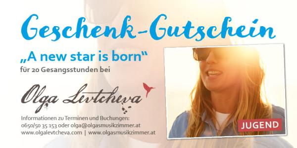 Geschenke Gutscheine Warm up - 3 Gesangstunden Preis: 210 € 3h zum Schnuppern und Kennenlernen Gettin´good - 5 Gesangstunden Preis: 350 € 5h - erste Fortschritte sind bemerkbar Even better - 10 Gesangsstunden Preis: 700 € 10h - grundlegende Technik beginnt sich zu festigen A new star is born - 20 Stunden JUGEND-Paket Preis: 1300 € 20h Jugend: Junge Stimmen werden schrittweise professionell aufgebaut A new star is born - 20 Stunden ERWACHSENE Preis: 1400 € 20h professionelles Arbeiten beginnt Anrede* Frau Herr * Pflichtfelder Gutschein anfordern